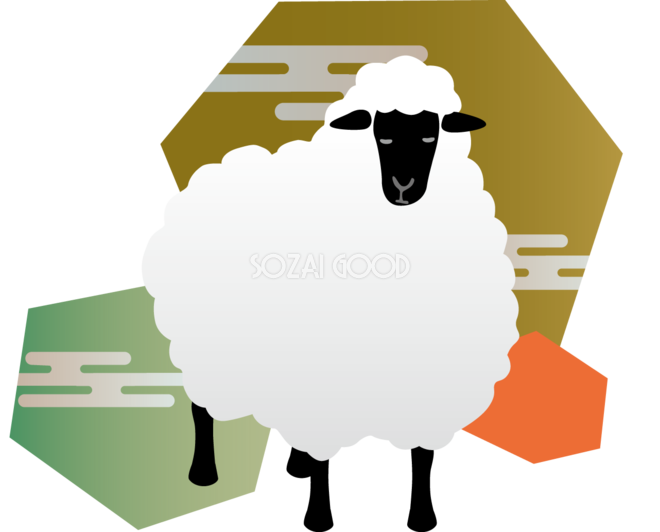 3つの多角形と雲と黒い羊 かっこいい 2027 未年イラスト 無料 フリー素材です。JPGやPNG画像の他に、Adobe Illustrator AI形式のベクターデータでもフリーです。