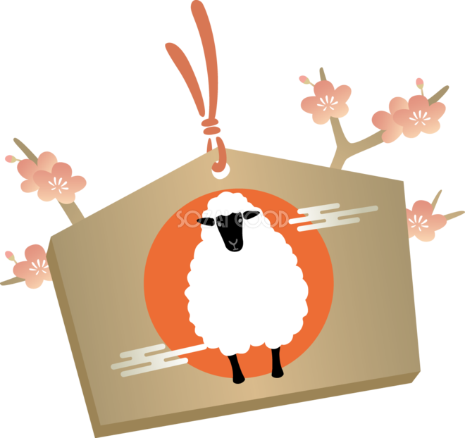 黒い羊の絵馬と梅の枝 かっこいい 2027 未年イラスト 無料 フリー素材です。JPGやPNG画像の他に、Adobe Illustrator AI形式のベクターデータでもフリーです。