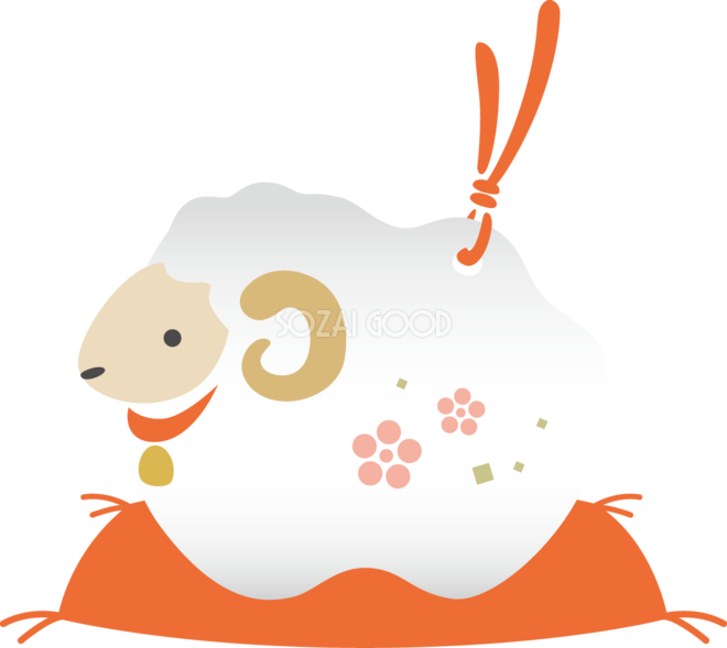 座布団に乗った羊の土鈴 かわいい 2027 未年イラスト 無料 フリー素材です。JPGやPNG画像の他に、Adobe Illustrator AI形式のベクターデータでもフリーです。