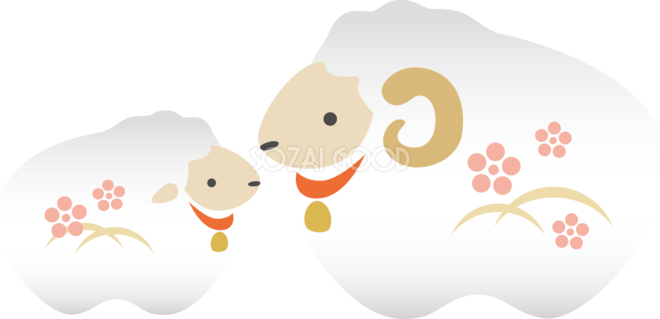 親子の羊の土鈴 かわいい 2027 未年イラスト 無料 フリー素材です。JPGやPNG画像の他に、Adobe Illustrator AI形式のベクターデータでもフリーです。