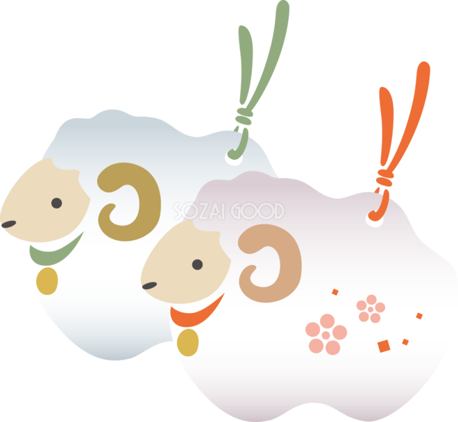 羊のよりそい土鈴 かわいい 2027 未年イラスト 無料 フリー素材です。JPGやPNG画像の他に、Adobe Illustrator AI形式のベクターデータでもフリーです。