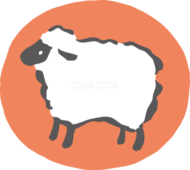 赤い円の中に黒い羊 筆書き風 2027 未年イラスト 無料 フリー素材です。JPGやPNG画像の他に、Adobe Illustrator AI形式のベクターデータでもフリーです。