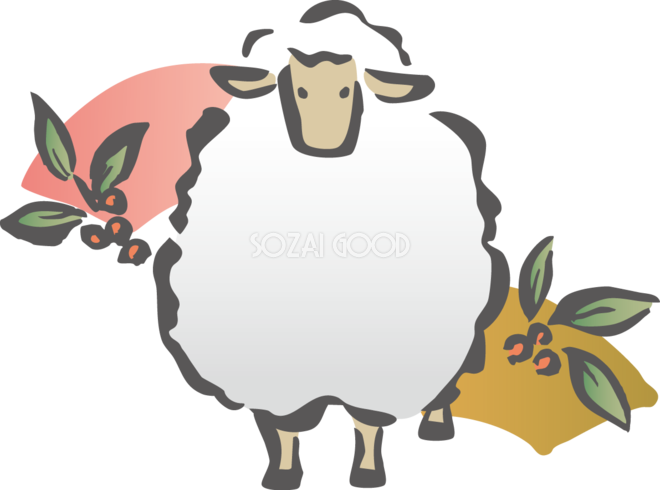 羊と扇形と南天 筆書き風 2027 未年イラスト 無料 フリー素材です。JPGやPNG画像の他に、Adobe Illustrator AI形式のベクターデータでもフリーです。