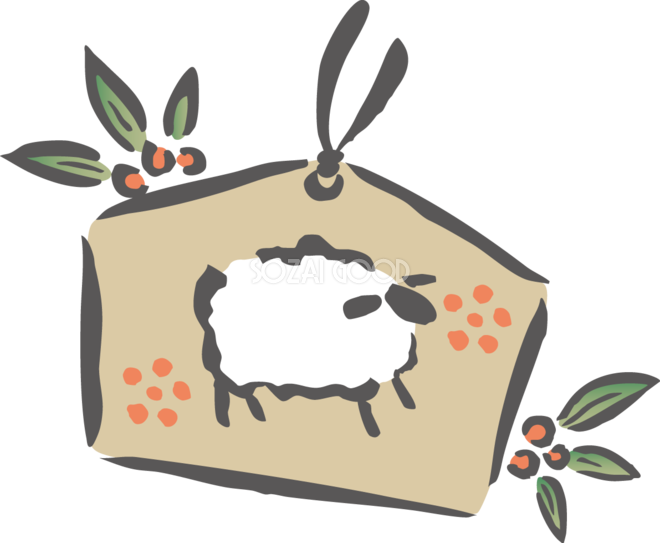 羊の絵馬と南天 筆書き風 2027 未年イラスト 無料 フリー素材です。JPGやPNG画像の他に、Adobe Illustrator AI形式のベクターデータでもフリーです。