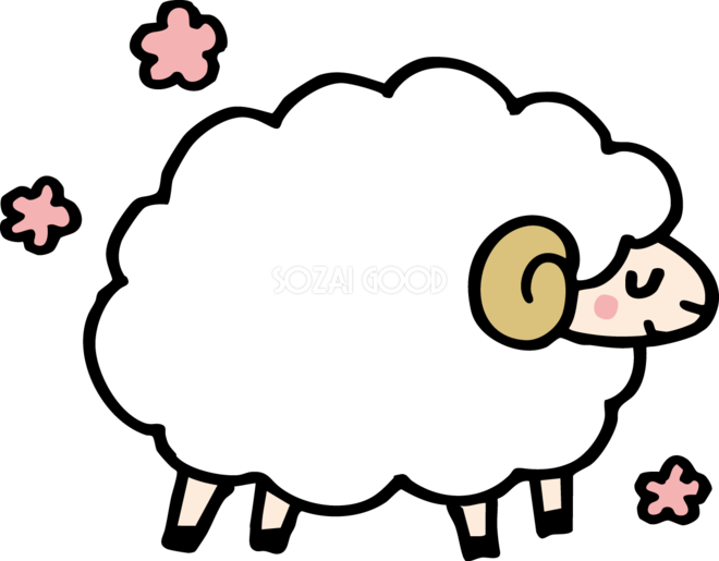 横向きの目を瞑る羊 かわいい 2027 未年イラスト 無料 フリー素材です。JPGやPNG画像の他に、Adobe Illustrator AI形式のベクターデータでもフリーです。