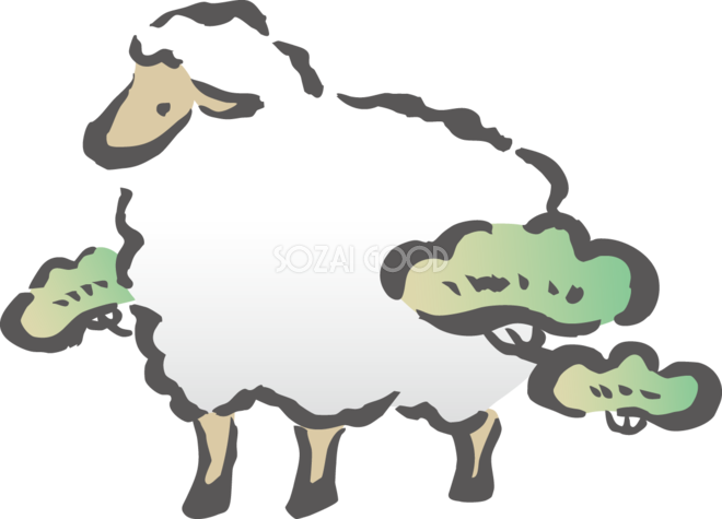 松と羊 筆書き風 2027 未年イラスト 無料 フリー素材です。JPGやPNG画像の他に、Adobe Illustrator AI形式のベクターデータでもフリーです。