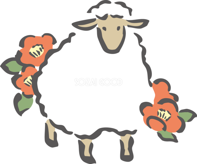 椿と羊 筆書き風 2027 未年イラスト 無料 フリー素材です。JPGやPNG画像の他に、Adobe Illustrator AI形式のベクターデータでもフリーです。