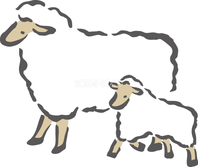 並んで歩く羊の親子 筆書き風 2027 未年イラスト 無料 フリー素材です。JPGやPNG画像の他に、Adobe Illustrator AI形式のベクターデータでもフリーです。