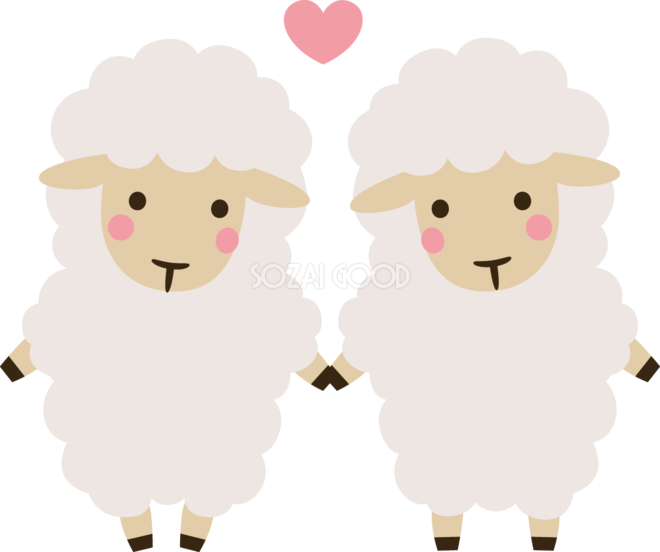 カップルの羊 2027 未年 かわいい イラスト 無料 フリー素材です。JPGやPNG画像の他に、Adobe Illustrator AI形式のベクターデータでもフリーです。