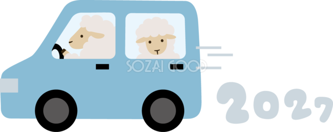 車に乗るかわいい羊 2027 文字 ロゴ 未年イラスト 無料 フリー素材です。JPGやPNG画像の他に、Adobe Illustrator AI形式のベクターデータでもフリーです。
