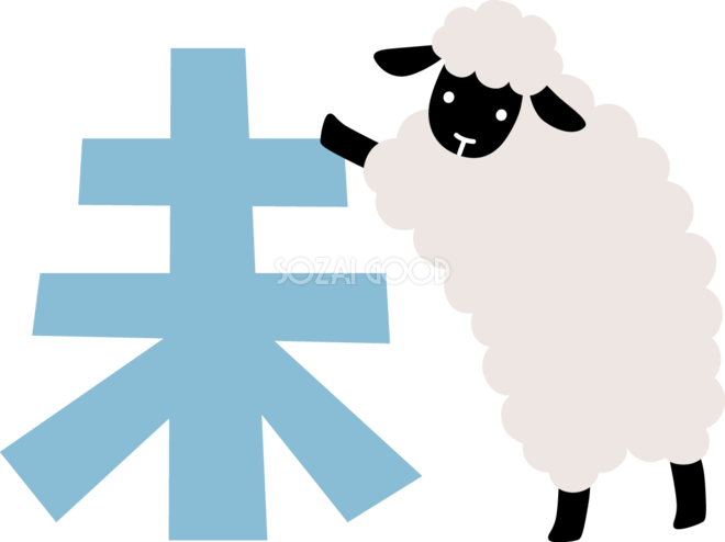 未の文字ロゴに寄りかかる黒い羊 かわいい 2027 未年イラスト 無料 フリー素材です。JPGやPNG画像の他に、Adobe Illustrator AI形式のベクターデータでもフリーです。