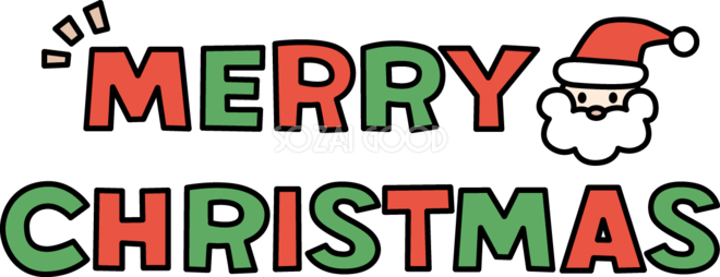 MERRY CHRISTMASのロゴとサンタクロースの顔 かわいい クリスマス イラスト 無料 フリー素材です。JPGやPNG画像の他に、Adobe Illustrator AI形式のベクターデータでもフリーです。