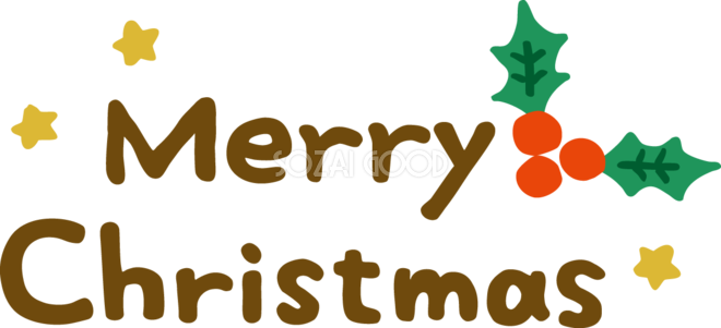Merry Christmasのロゴと柊 かわいい 文字 クリスマス イラスト 無料 フリー素材です。JPGやPNG画像の他に、Adobe Illustrator AI形式のベクターデータでもフリーです。