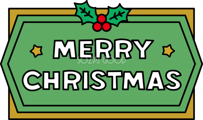 柊とMERRY CHRISTMASのロゴの看板 かわいい 文字 クリスマス イラスト 無料 フリー素材です。JPGやPNG画像の他に、Adobe Illustrator AI形式のベクターデータでもフリーです。