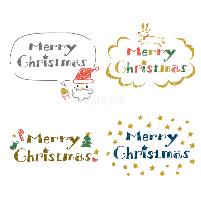 Merry Christmas(メリークリスマス) 文字 ロゴ サンタクロース セット素材集 無料 フリー素材です。JPGやPNG画像の他に、Adobe Illustrator AI形式のベクターデータでもフリーです。